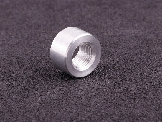 Aluminiowa nakrętka do wspawania o długości 17mm z gwintem M10x1,0mm.